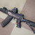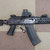 写真5枚目の実銃カスタムに一目惚れして製作したオリジナルカスタムガンです。LCTのTX-5電動ガンをベースにバレルを切り詰め、DS(ダイナミックスター)KTRフロントサイトキット、クレブスUFMタイプレイル、マグプルタイプグリップ、アスラダイナミクス製TWSタイプトップカバードッグレイル、DS TWSタイプベーシックピープリアサイト、Airsoft Artisan製ボルトエクステンション、NB MAGPUL CTRタイプストック、U.S.PALM PTS150連樹脂マガジンを装着しました。内部はLCTのノーマルです。ワンオフでDSのUFMレイルのアッパー部分をカットして、専用マウントを製作しフロントサイトを収めてあります。ハイダーの後部もロアーレイルに隠れてしまい、UFMレイルを装着したAKカスタムとしては究極の短さとなってCQBなどでとても取り回しやすいカスタムライフルです。(ドットサイトは別売りです)